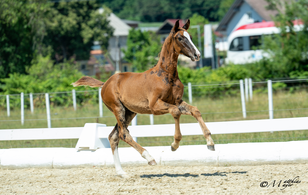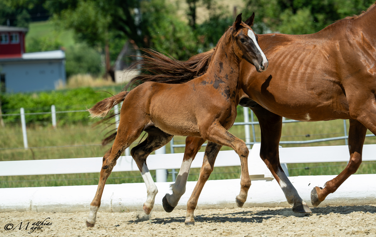 Born on April 13, 2025, Valentino de Rossi is a son of the exceptional stallion Va Bene, bred and standing at Zuchthof Wadenspanner in Pattendorf – affectionately known as “The King of Pattendorf”.